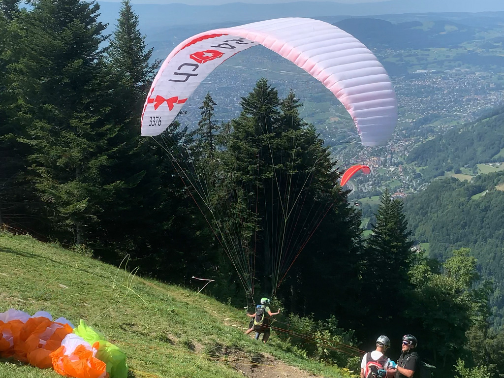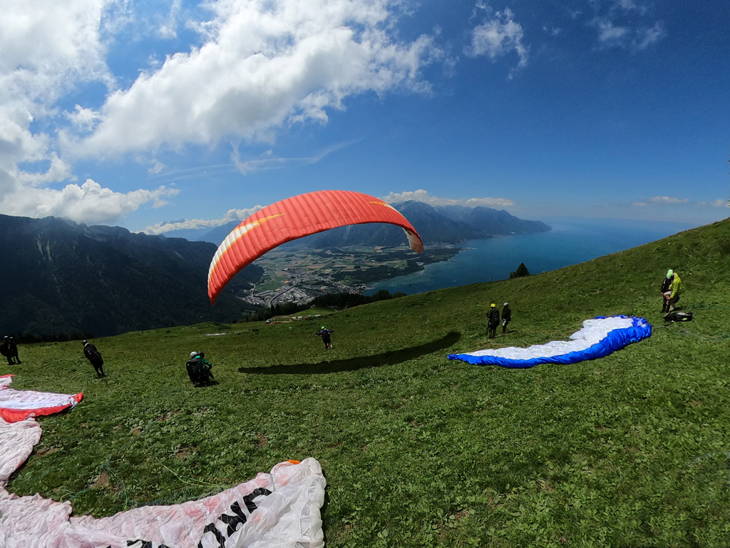 Le décollage se situe à Sonchaux altitude 1'400 m (4'590ft) et 1'000 m (3'300ft) de dénivellation.